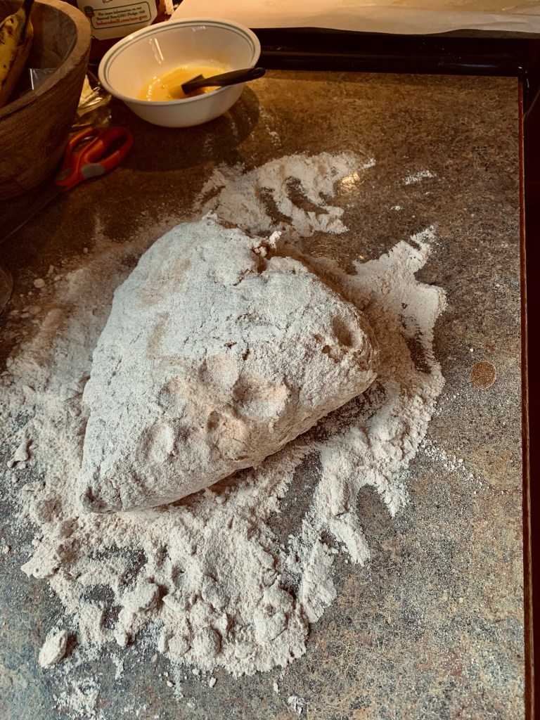 •while you’re waiting 10 minutes, flour a surface to knead dough & crack an egg to make some egg wash.